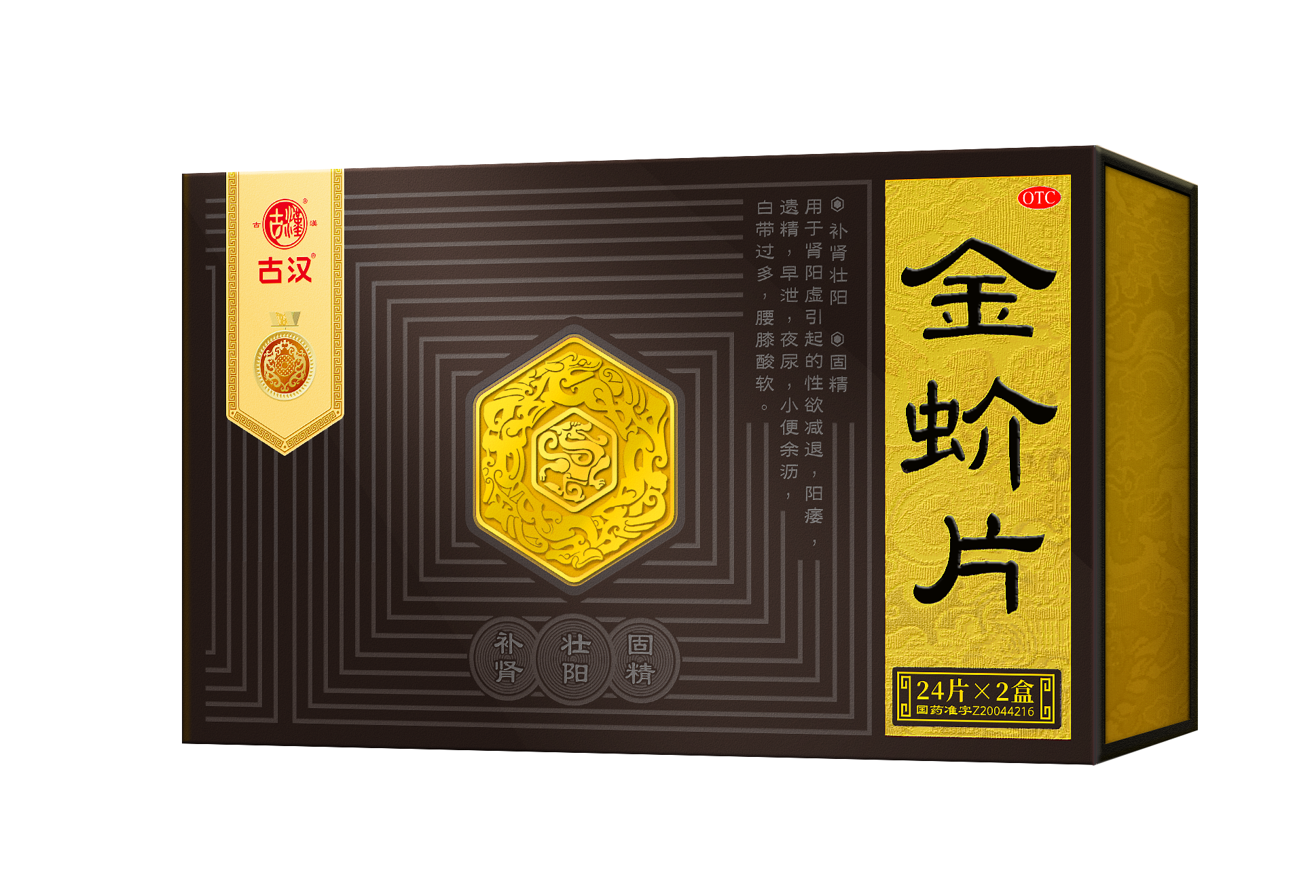 Pinyin: Jinjie Pian - [Ingredients]Rosae Laevigatae Fructus, Gecko, Epimedii Folium, Allii Tuberosi Semen, Corni Fructus.